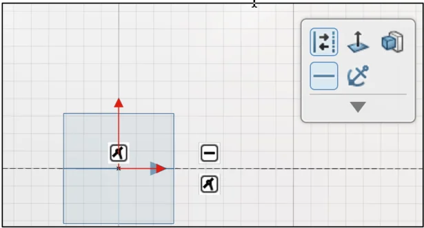 Click the horizontal line as illustrated. The Coincident and Horizontal callout icons are displayed. This is similar in SOLIDWORKS.