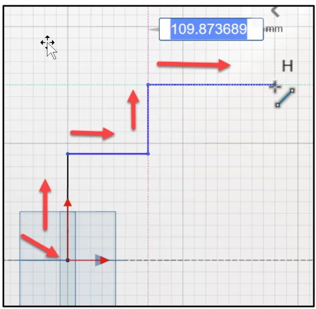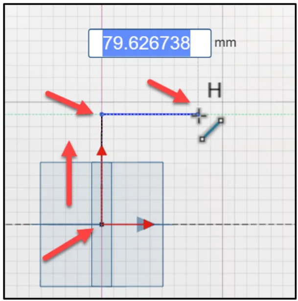 Click a point approximately 80mm. A H (Horizontal constraint) is displayed during the sketch process.