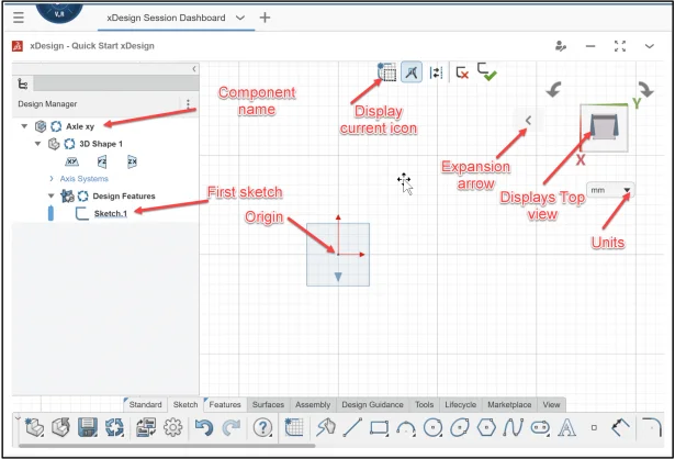 Most xDesign features start with a sketch. Sketches are the foundation for creating features.