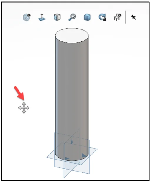 Note: Hold the middle mouse button down, drag the component in the Work Area. The pan icon is displayed. SOLIDWORKS uses a similar pan icon.