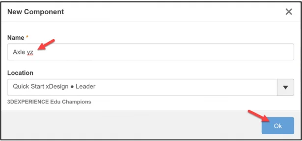 As an example, I created two Collaborative space locations as displayed in the New Component box: Engineering Design and Quick Start xDesign. I use the Quick Start xDesign Collaborative space for all lessons.
