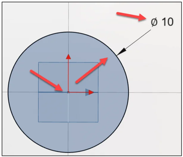 Sketch a 10mm circle centered about the Origin. This process is similar in SOLIDWORKS.