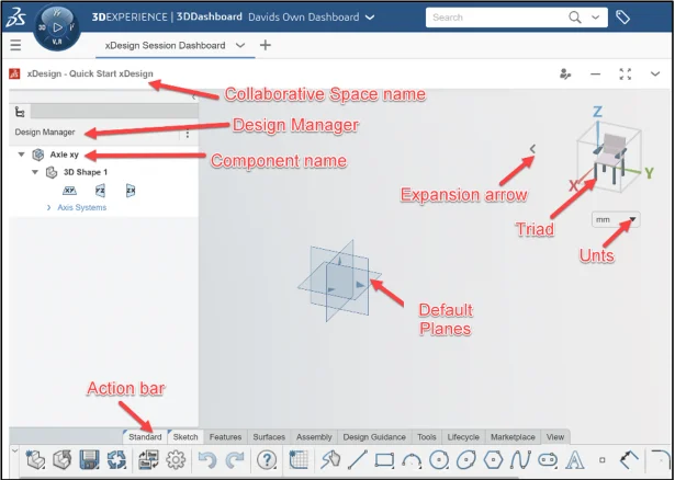The xDesign App is displayed. Quick Start xDesign is the Collaborative space location.
