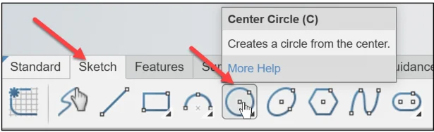 Click Center Circle from the Sketch tab. The Sketch entities in xDesign are similar to the ones in SOLIDWORKS.