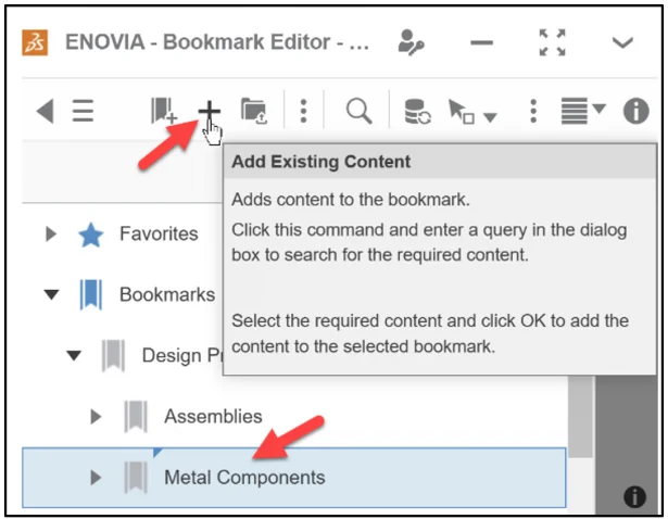 Add an existing Physical Product to the Metal Components folder. Use the Bookmark Editor Widget.
