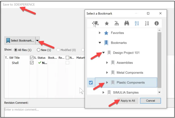 One of the best simple practices for SOLIDWORKS data is to create bookmarks upon the initial save to the 3DEXPERIENCE platform. Choosing “Save With Options” will give the user the choice of existing bookmark folders or to create a new bookmark to contain the file references.