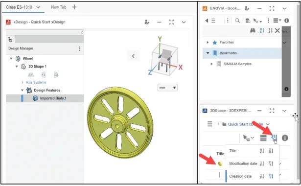 Note: When indexing is complete, the Wheel is displayed in the 3DSpace Widget. You may need to click Sort, and select the most recent Creation date.