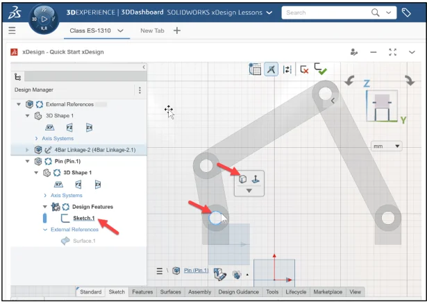 In this lesson, download the required xDesign components. Extract and import the xDesign components: (4Bar Linkage-2 and Long Pin) into your Collaborative space.