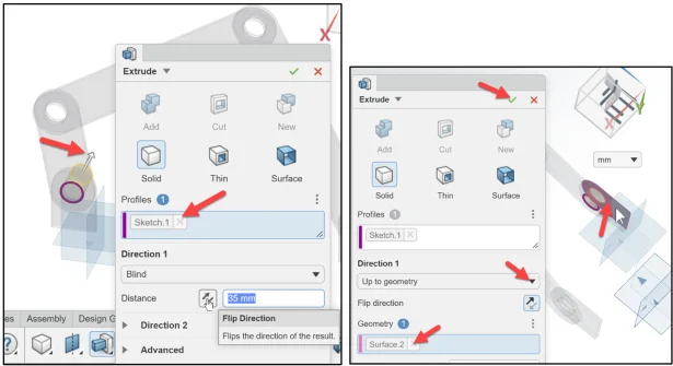 Click Flip Direction. The Extrude direction arrow points backwards.