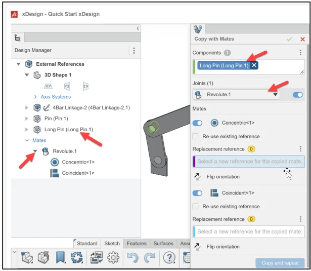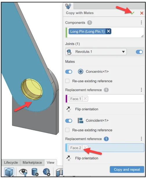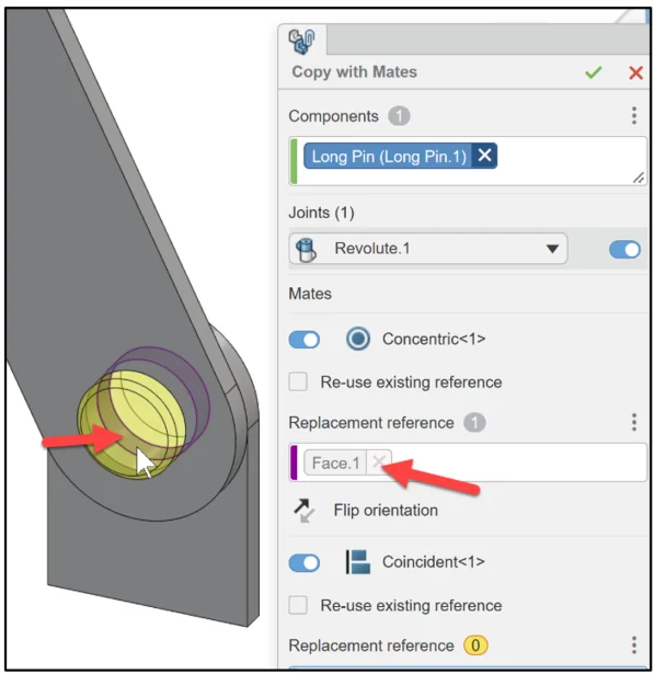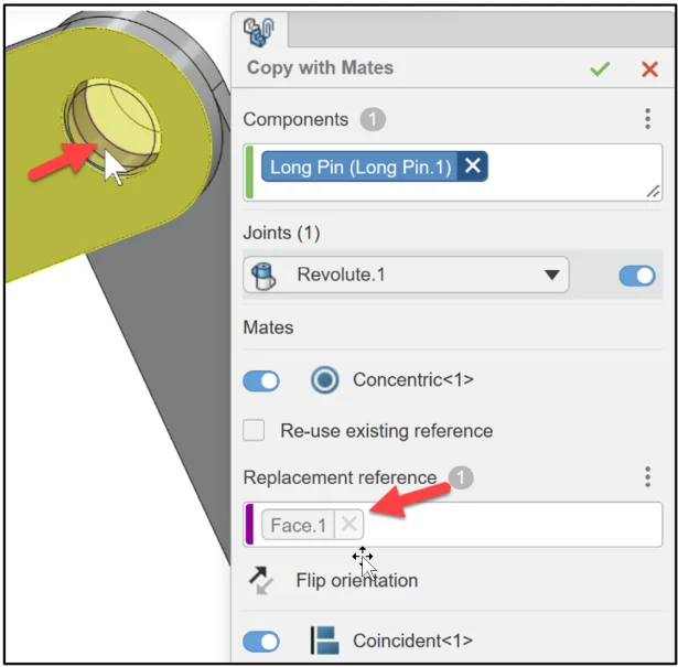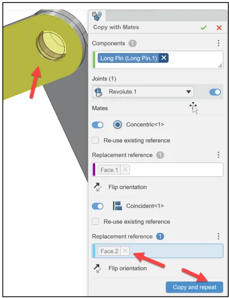 Click Copy and repeat. Revolute.2 (Concentric, Coincident) is created.