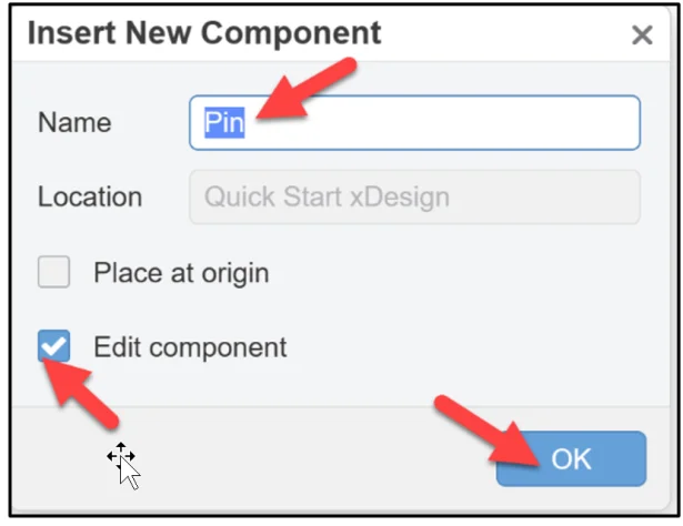 Enter Pin for Name. Accept Edit component for option. The Edit Component option provides the ability to edit the component after inserting it.