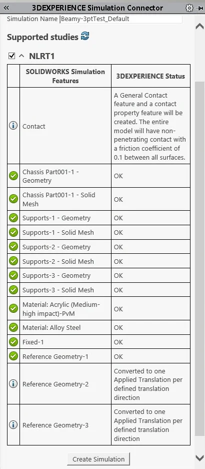 In this post we’re going to explore a new solution, Structural Professional Engineer, available inside Dassault Systèmes 3DEXPERIENCE platform that utilizes the SIMULIA/Abaqus solver and couples with SOLIDWORKS. We’ll start by using the one-click connector, see Figure 2. The one-click connector transfers all of the relevant simulation setup from SOLIDWORKS into the platform, and removes much of the redundant work that would typically be required to move between simulation tools.