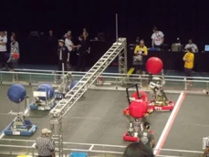 It was also great that Team 114 from Los Altos High School had a very respectable performance at the competition. They ended up ranked #6 in the qualifying matches and captain of the #4 alliance. We had one qualifying match that we played with 114 and even though our other alliance partner died during the match, 971 and 114 won the match together decisively. In the video list above, it is Match #58.