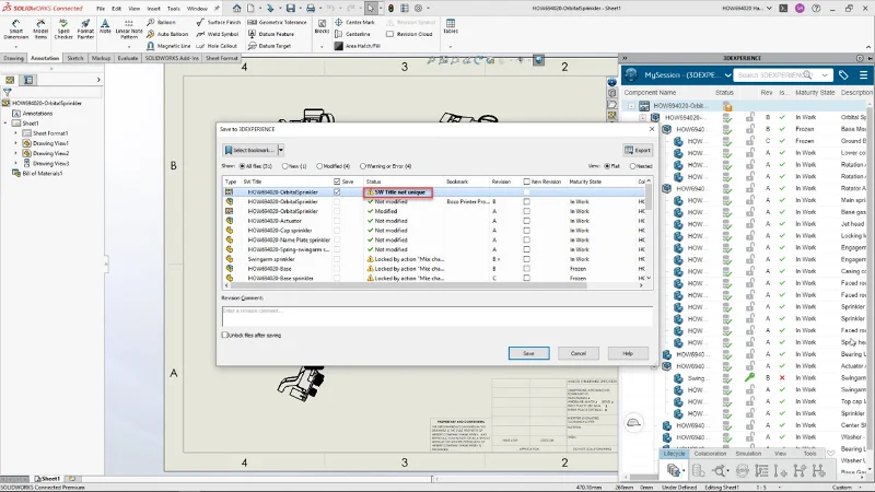 You can enable the Check File Title Uniqueness feature when saving content to the 3DEXPERIENCE platform. This helps reduce duplicates and ensures that you always have the right SOLIDWORKS drawings.