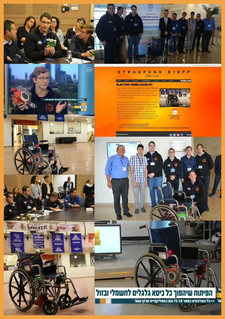 Steampunk 1577 also extended their reach when their electric wheelchair kit was featured in the Israeli media. The team and their kit could be seen on morning shows and read about in newspapers. They were even invited to present their project to the Israeli Parliament Science Committee on the International Day of Persons with Disabilities. With this wider exposure, Steampunk 1577 developed relationships with hospitals and organizations and were able to supply them with low-cost motorized wheelchairs, and gain wisdom from professional caregivers and doctors. “We are always happy to develop partnerships that help us reach our goal,” explained Eden, “and we would like to ask anyone who can help to contact us.”