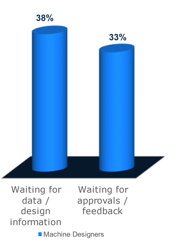 While there are many costs as a result of poor collaboration, poor visibility to engineering information and manual communication often result in communication delays. Engineers report that waiting for information (38%) and waiting for feedback or approvals (33%) result in wasted time that prevents getting work done.