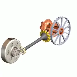 1) ROLLING FRICTION BASED SHAFT DRIVE – Using Extensive modelling features, the drivetrain team successfully designed a rolling friction based driveshaft system, which is more energy efficient than conventional sliding friction based gear train.