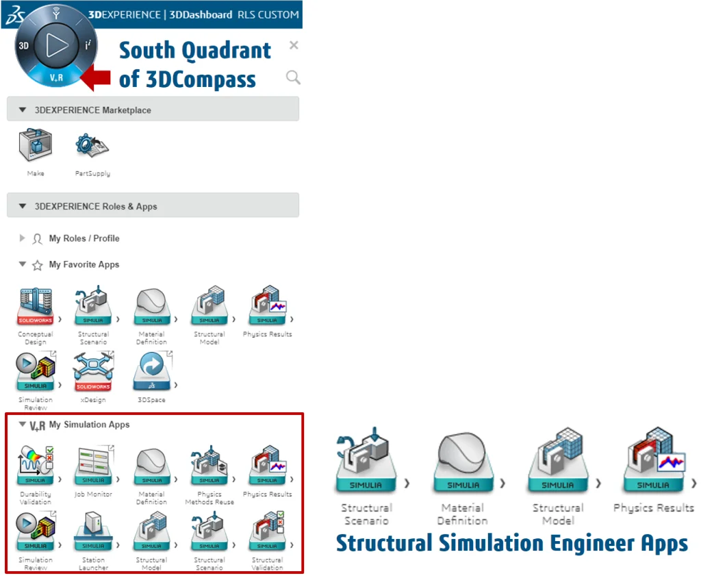 Structural Professional Engineer is a group of Apps on the 3DEXPERIENCE platform as shown below. There are several other simulation Apps available under the V+R My Simulation Apps section.