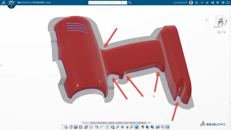 We’ve improved the way inside corners are handled when creating a parting surface for your mold designs. Self-intersections are automatically merged to create a smoother, more continuous surface.