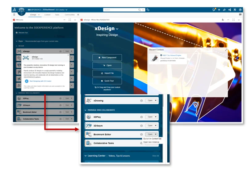 You can also launch another role, such as 3D Sculptor, right from the Welcome app, in addition to opening your collaboration and management apps, such as 3DPlay, Bookmark Editor and others.