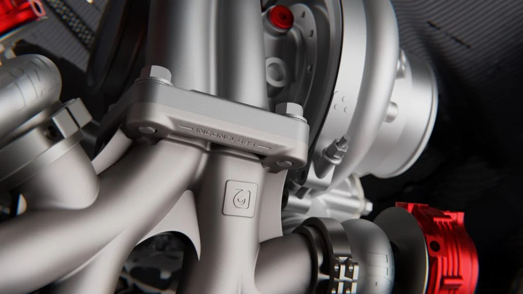 One of the things I found most interesting about the way the turbo header was manufactured – aside from the metal 3D printing element – was the level of consideration on material choice. Inconel 625 was the actual material they chose to use in this case.