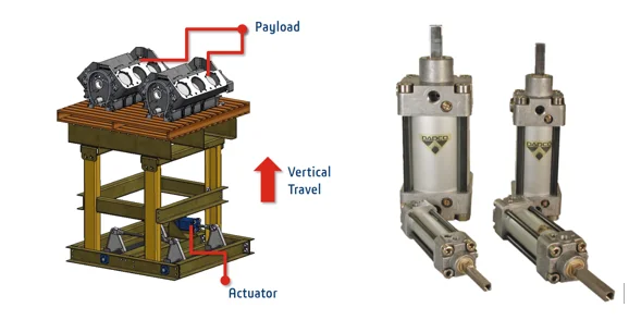 The webinar discusses the basics of motion analysis in the context of finding the best actuator design for a vertical lift rack system as shown below.