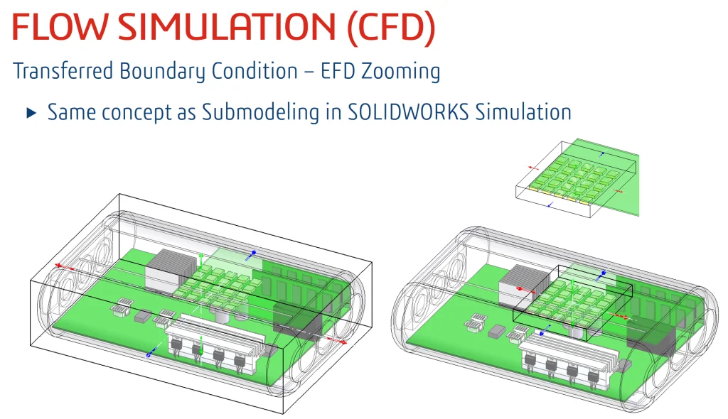 As a tech tip, we highlight the fact that we have the same concept of submodeling available in SOLIDWORKS Flow Simulation for CFD, albeit under a different name of Transferred Boundary Condition and EFD Zooming.