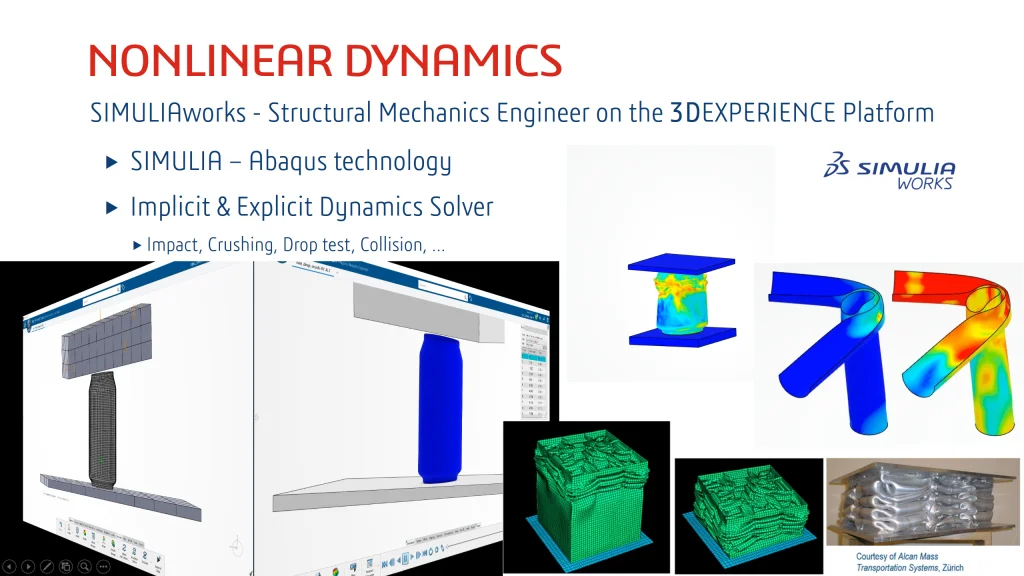 Nonlinear Dynamics was also briefly reviewed, summarizing the new capabilities offered under the SIMULIAworks product portfolio on the 3DEXPERIENCE platform. These include Structural Performance Engineer and Structural Mechanics Engineer that use the SIMULIA Abaqus technology for Implicit and Explicit Dynamics.