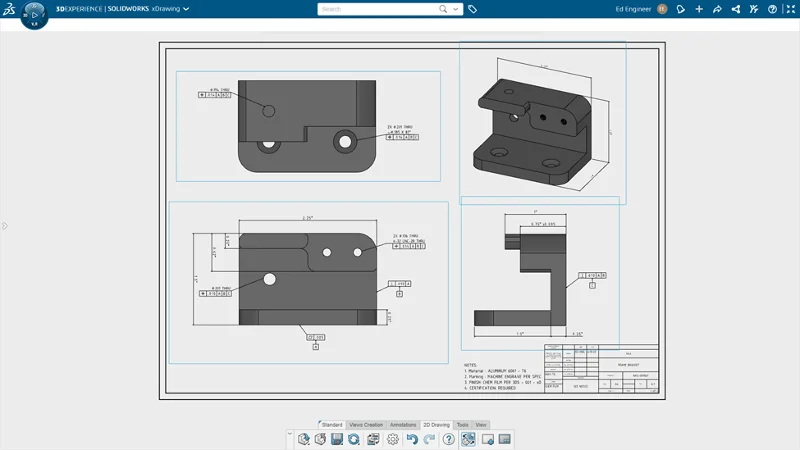 - 2D Drawings | Manufacturing Definition Creator – easily create both 3D definition and 2D drawings to meet supplier requirements faster.