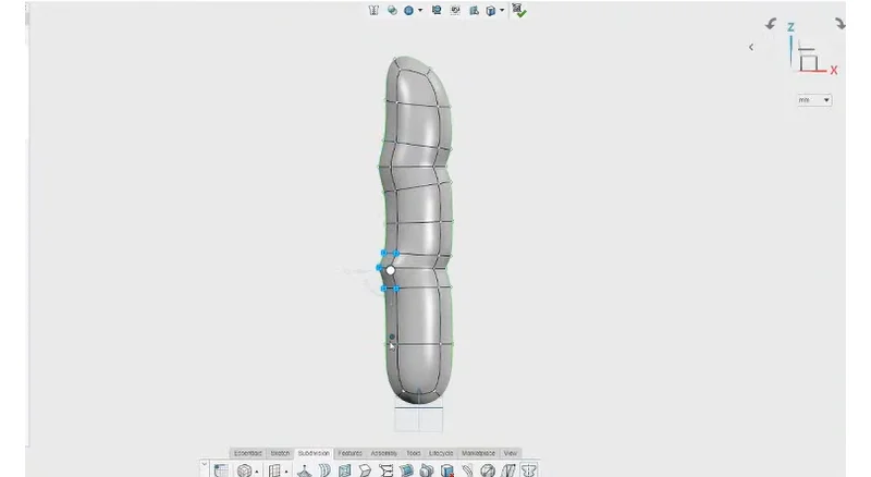 The side of the finger doesn’t need to be symmetric, so he chose one column of faces to get a nice round radius on the side. For the length he entered 10 for the dimension, which he said you don’t have to get right on the first try because you can always insert loops or delete loops after if you’ve created too many. He said he relates this process to sketching splines in SOLIDWORKS where you don’t want too many points, which would make it too much to control. On the other hand, you don’t want too few either because you need a good level of detail.