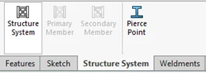 A final feature called ‘pierce point’ on the Structure System tab pre-defines pierce locations on the profiles. This allows pierce locations to be easily identified and selected during member definition. It is made specifically for, but is not limited to, I-beams. This saves the sometimes-awkward selection process that requires locating and zooming in on the profile and selecting through geometric entities. To set these, simply open the profile, select the pierce point feature, and assign a vertex/ sketch point to its correct reference. These will then be available to select when using the profile.
