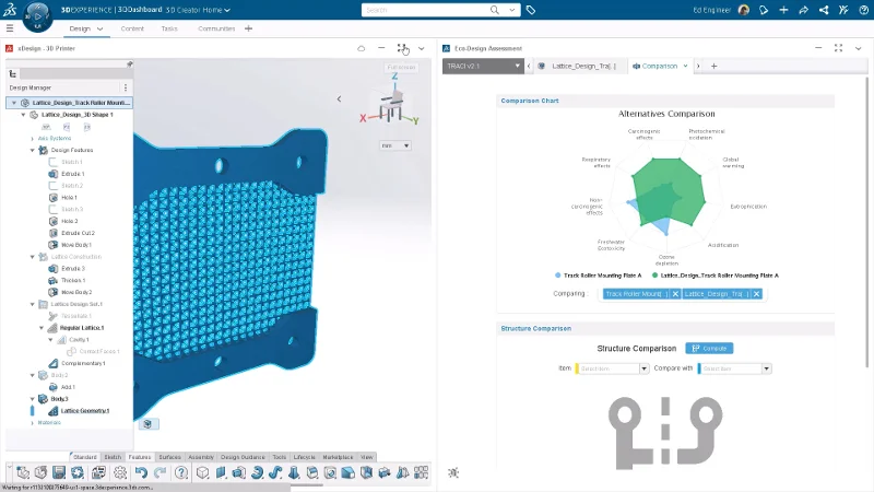 Design with the environment in mind. Simply drag and drop your 3D Creator models into the Eco-Design Engineer role to perform comprehensive lifecycle assessments, evaluate the environmental impact of your product, and compare environmental impacts between design alternatives.