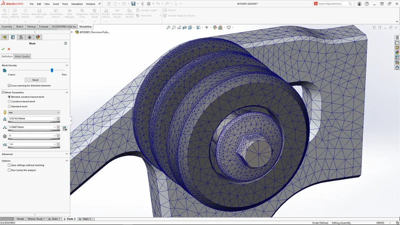 In Finite Element Analysis (FEA), the mesh is key, and a bad mesh and too dense a mesh results in an overly long solve time. With this year’s enhancements in SOLIDWORKS Simulation, you’ll experience an accelerated, blended, curvature-based mesh process for parts and assemblies with identical bodies. An improved mesh algorithm identifies identical parts that are repeated in an assembly. The algorithm reuses the same mesh for the identical parts instead of meshing each of them independently, saving you time.