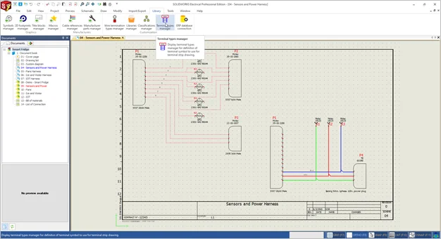SOLIDWORKS Electrical 2021 improves the overall workflow from schematic to 3D to manufacturing documentation. Greater control over creating libraries for coverings, terminals, interconnections, and accessories enables access to metadata from the schematic all the way to connector tables in cable/harness drawings.