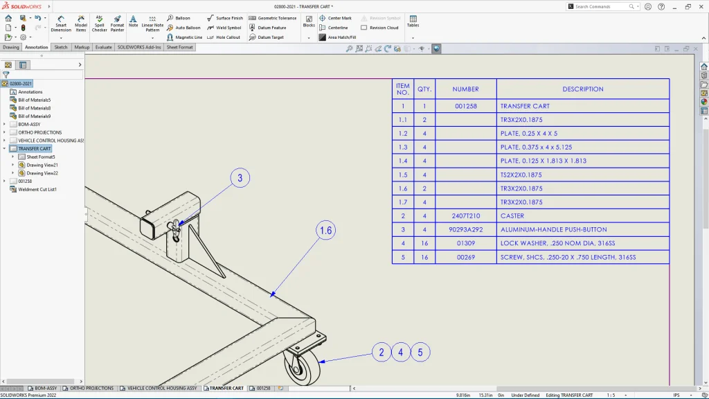 Save time when opening and detailing a SOLIDWORKS drawing. Access Detailing mode for all drawings, regardless of the SOLIDWORKS version you saved them in or if you saved them in Detailing mode. Open a drawing in Detailing mode directly from an assembly already opened in Large Design Review mode.