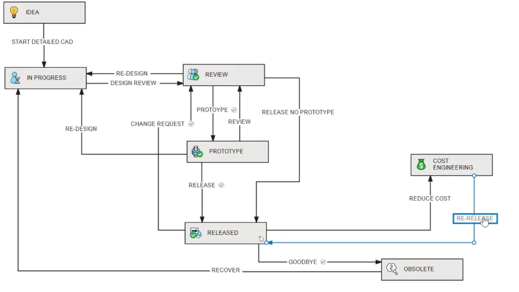 We think you will appreciate the more consistent Windows Explorer integration and better thumbnail support. PDM now has greater flexibility in controlling custom column sets. Support for BOM settings reduces the risk of mistakes and improves efficiency when working with BOMs. And icon selection is now available for workflow states.