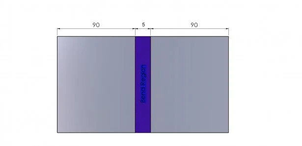 Bend allowance allows the user to calculate the developed size of the sheet metal part based on a value which the user defines that represents the bend region. If we look at the example below, you will see that that we have 2 dimensions that go from the end of the sheet to the outside setback (start of the bend region on the outside of the sheet). If we were to define a bend allowance of 5mm, the developed size for the sheet would be 185 (90+90+5).