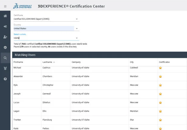 The results can be seen in the Dassault Systèmes Certification Center by selecting on CSWE and Idaho, USA to prove that almost 1% of all CSWE’s in the world are from the University of Idaho.