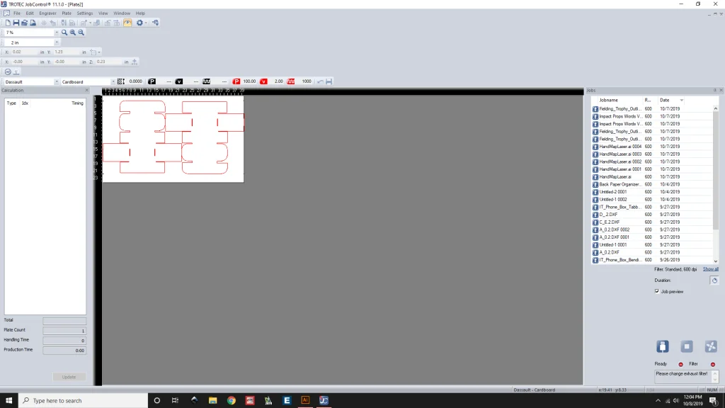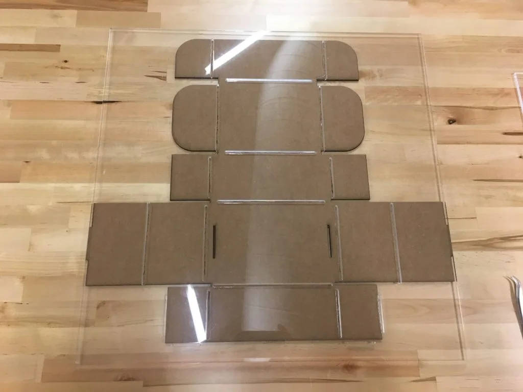 The box was then cut out of 1/8” Corrugated Cardboard on the Trotec Speedy 400 laser cutter in the 3DEXPERIENCE Lab at DASSAULT SYSTEMES in Waltham.