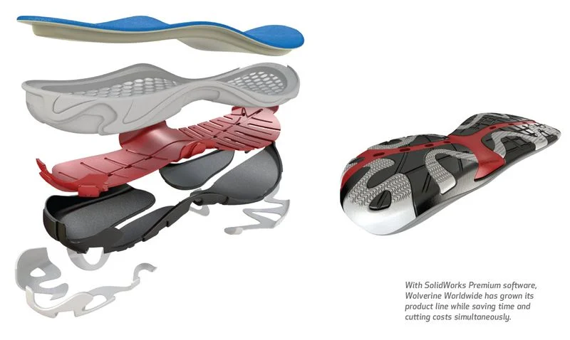 To reduce material usage in its products by 50 percent, Wolverine uses SolidWorks Simulation tools in order to maintain the strength and performance of the shoe. As a result of the partnership with SolidWorks, Wolverine has not only accelerated and expanded product development, but it has also grown into a trusted global enterprise.