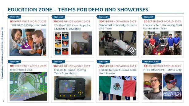 In-person, visit the 3DEXPERIENCE Education Zone to see student teams, Formula SAE Vanderbilt University and Shell Eco Marathon Louisiana Tech University. Check out new software tools from SOLIDWORKS R&D and Dassault Systemes including SOLIDWORKS Apps for Kids and SOLIDWORKS Cloud Apps for Students.