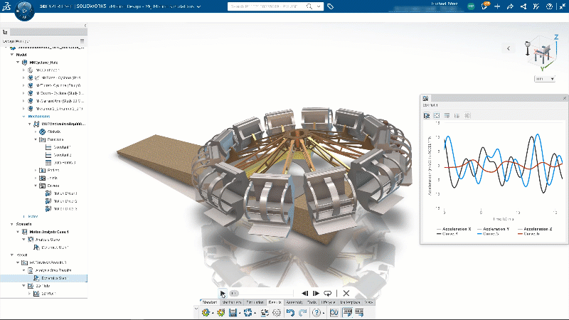 - Motion simulation automatically updates when the design changes