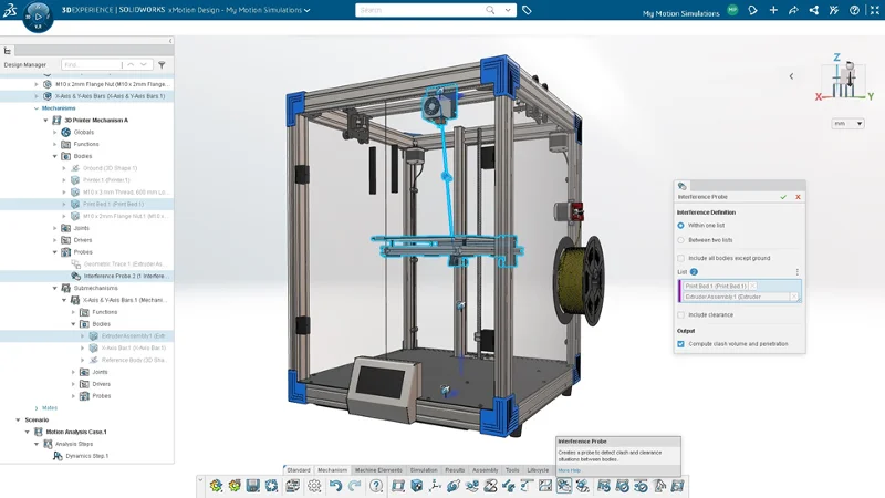 The latest update, R2024x GA (general availability), improves the user experience, visualization, and speed, so you can evaluate your models easier and faster and assess more what-if scenarios. This release features a new Submechanism command to reduce your set-up time so you can quickly analyze complex system models. In addition, you can gain a better understanding of your mechanical system with 3D visualization enhancements, including load animations of joints and motion elements; and identify potential clashes between components with the new Interference Probe command.