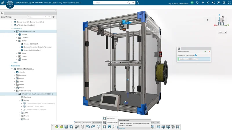 In the latest update there’s a new Submechanism command that you can use to create an instance of an existing mechanism under the current mechanism. This enables you to easily and quickly reuse verified mechanisms existing in sub-assemblies as submechanisms to build a complete motion model.