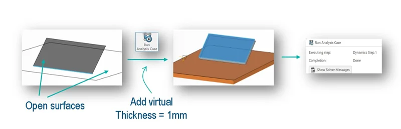 Easily work with open surfaces in your mechanisms with the ability to run a simulation on an open surface as 3D Motion Creator will automatically apply a 1mm virtual thickness so you can properly run the simulation.