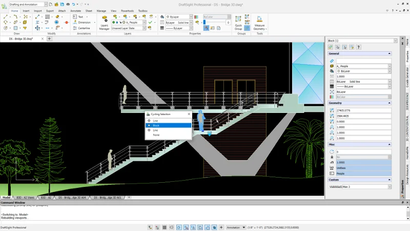 For example, if you select a Reference file, the Reference tab with its relevant tools is automatically added and set current. If you click on a Dimension, the appropriate Dimension Ribbon tab is added. And to make your workflow even more efficient, many tools will update the entity you’re editing in real-time.