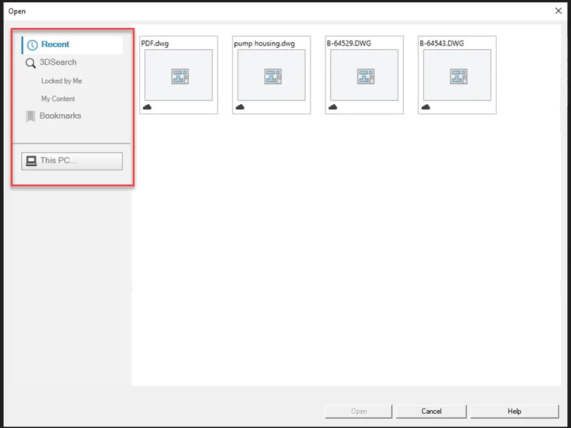 You can easily find and open recent content on your machine using File Explorer, or on the 3DEXPERIENCE platform using 3DSearch, and now open bookmarks with the new “Bookmarks” option.