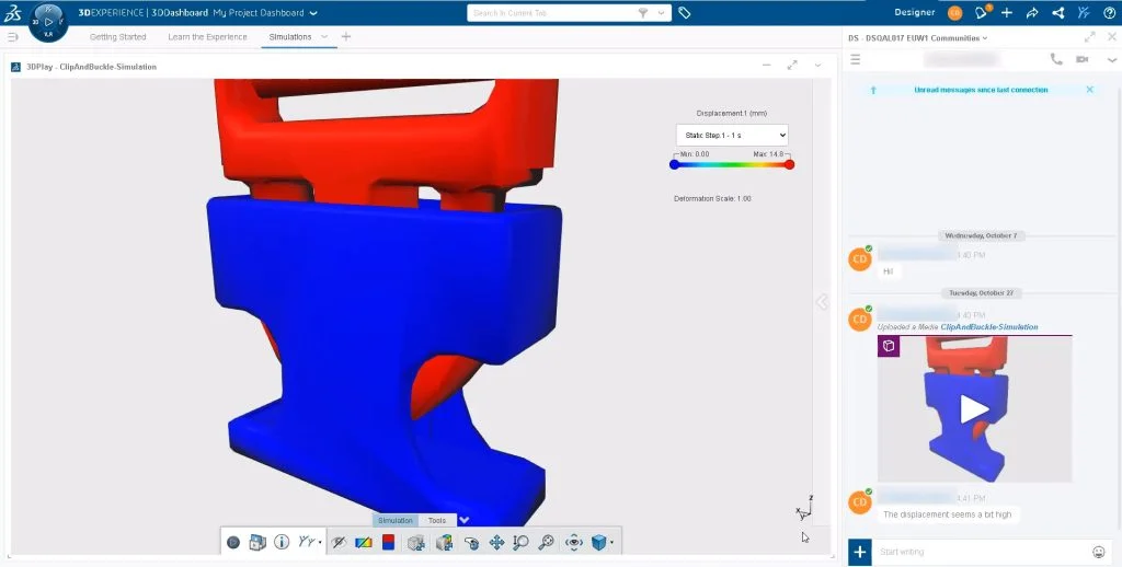 With the structural simulation products on the 3DEXPERIENCE Works platform, you can now share lightweight simulation result animations in a chat conversation. Now anyone on your team can securely review your simulation results from any location with a simple web browser. The ability to instantly share lightweight results means design decisions can be made faster.