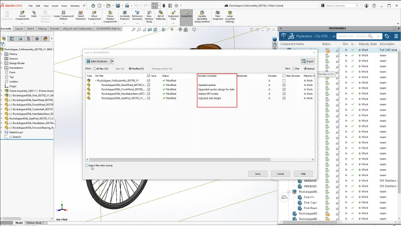 You can now add revision comments to multiple components from the Save Dialog box before saving your data to the 3DEXPERIENCE platform. Just checkmark them and add your comments.