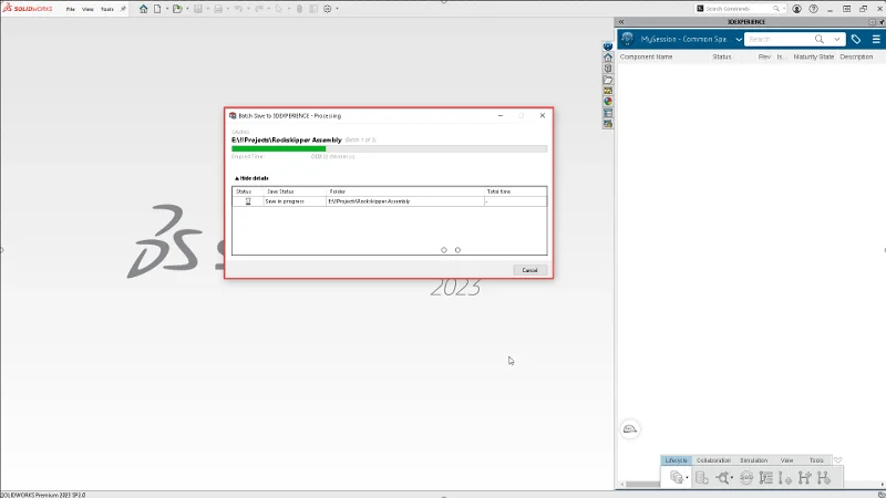 - New and Improved Batch Save to 3DEXPERIENCE Status Dialog – stay informed about your batch save process and gain more insights with reports.